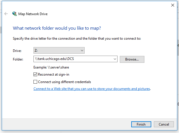 - Enter the [drive path], for example, \\tank.uchicago.edu\DCS.