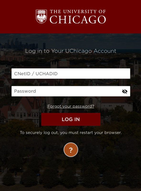 - Log in using your CNetID and password. This is the first layer of security or the first factor of 2FA.
