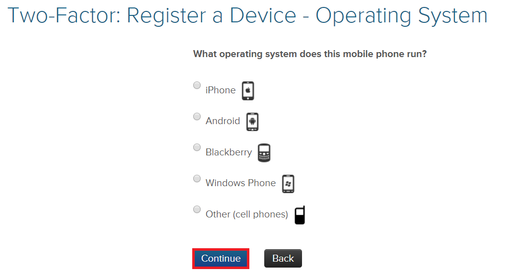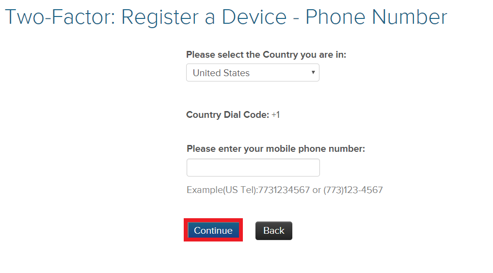 - Select the Mobile Phone option, then click Continue. You can find information on the use of tokens in the 2FA: FAQ.
