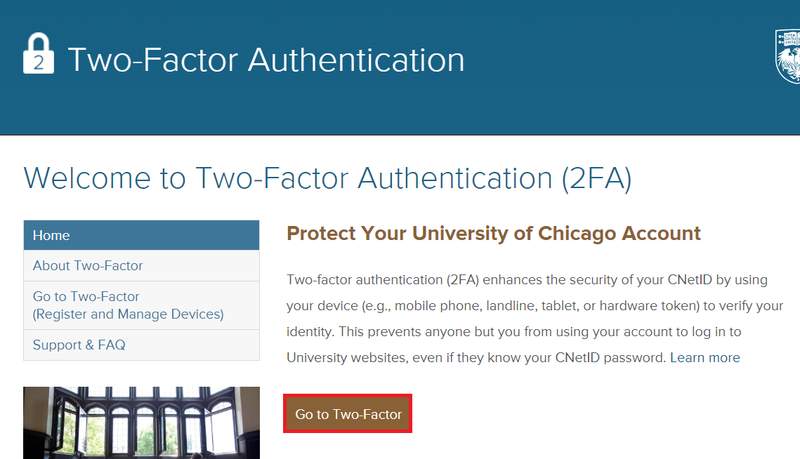 - To enroll in 2FA, visit 2fa.uchicago.edu and click Go to 2Factor.