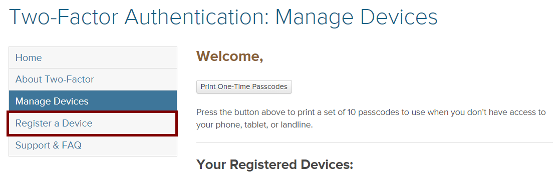 - If you have not previously enrolled in 2FA, you will be prompted to Register a Device.
