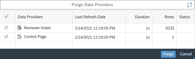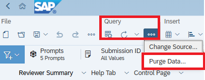 - Select Purge to purge the data from the report. If the report includes prompts, you'll have the option of clearing the prompt values.