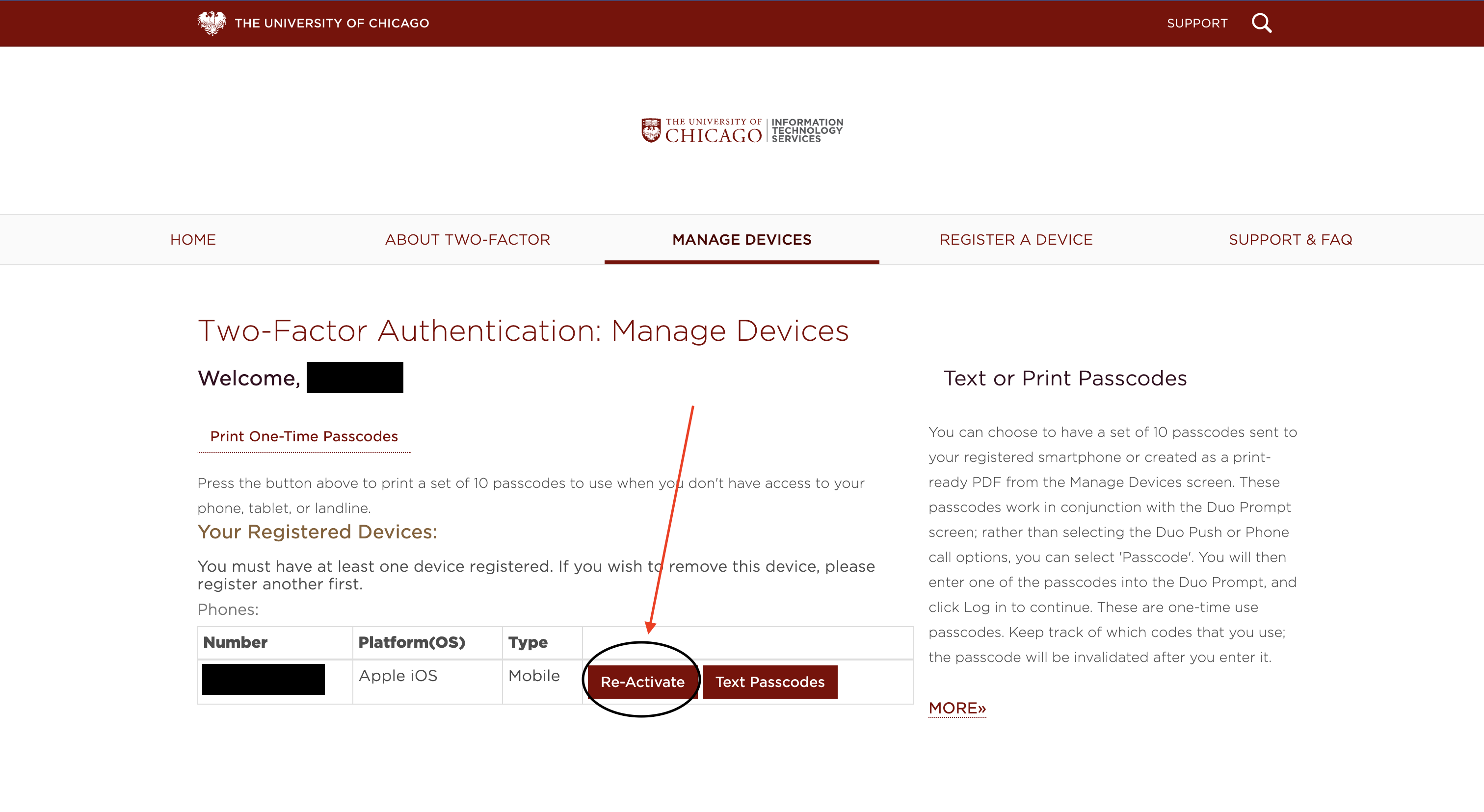 Having the Duo Mobile app already installed on your device before reactivating is helpful. More information is found in Register Your Smartphone in Two-Factor Authentication (2FA). If you'd like to add a tablet, the process is slightly different; see the instructions to Register a Tablet. It is important to register more than one device, if possible, to ensure that you continue to have access even if your primary device is unavailable.