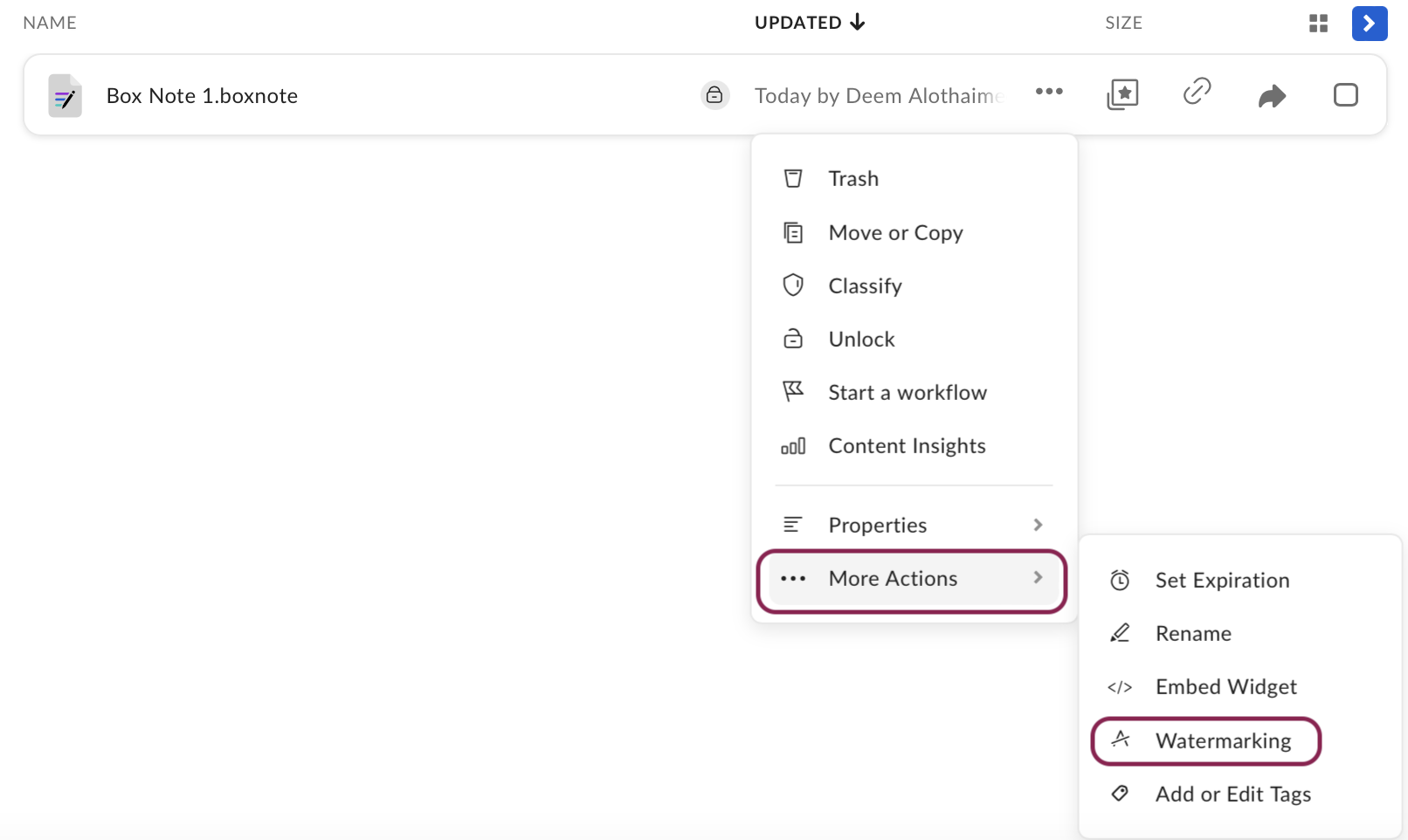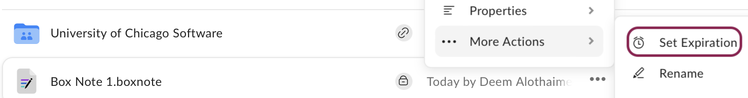 - Right-click on a file's ellipses icon to open More Actions, then select Set Expiration.