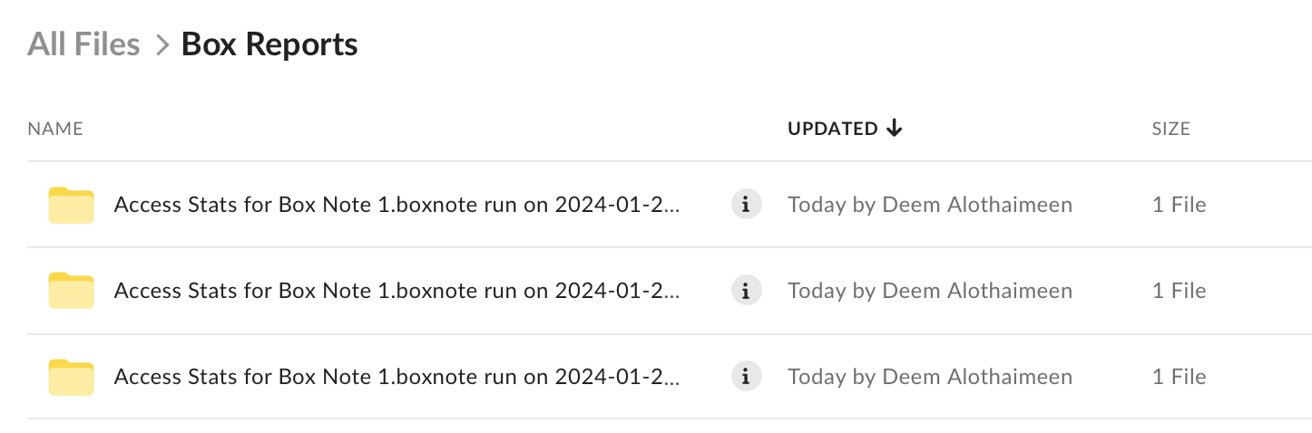 - Locate your Box Reports folder then click on it. A list of Box Report folders appears.