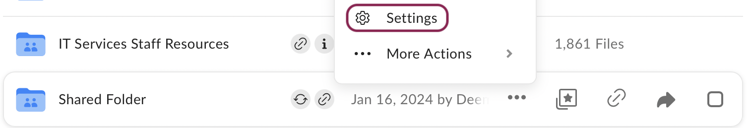 - Right-click on the ellipses icon to the right of a folder, then select Settings.