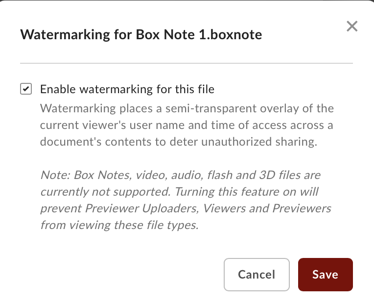 - Scroll down to the section titled Watermarking, then check Enable watermarking for this folder box.