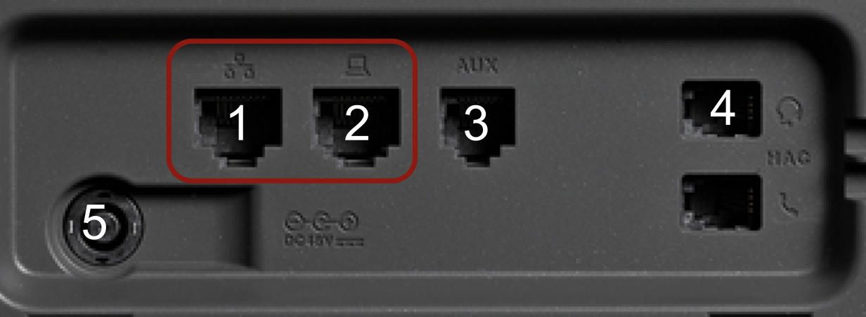 Port 5: DC / Power port: A port used to connect to a power cable (not needed in most areas of campus).