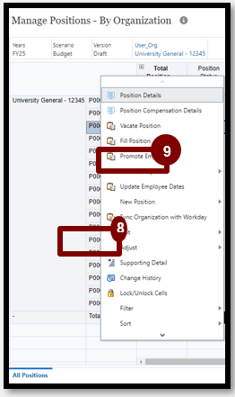 8. Right select on one of the hourly positions that changed scheduled weekly hours