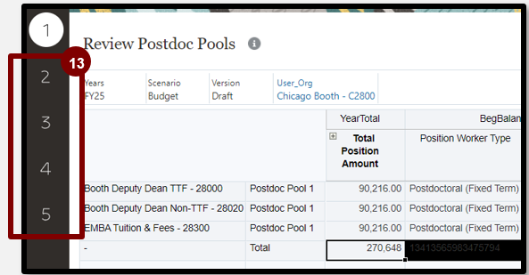15. Review Position Budgets by Position, Org, Fund, and Purpose.