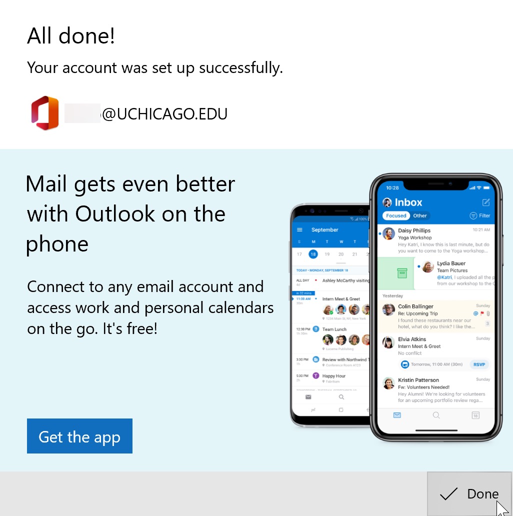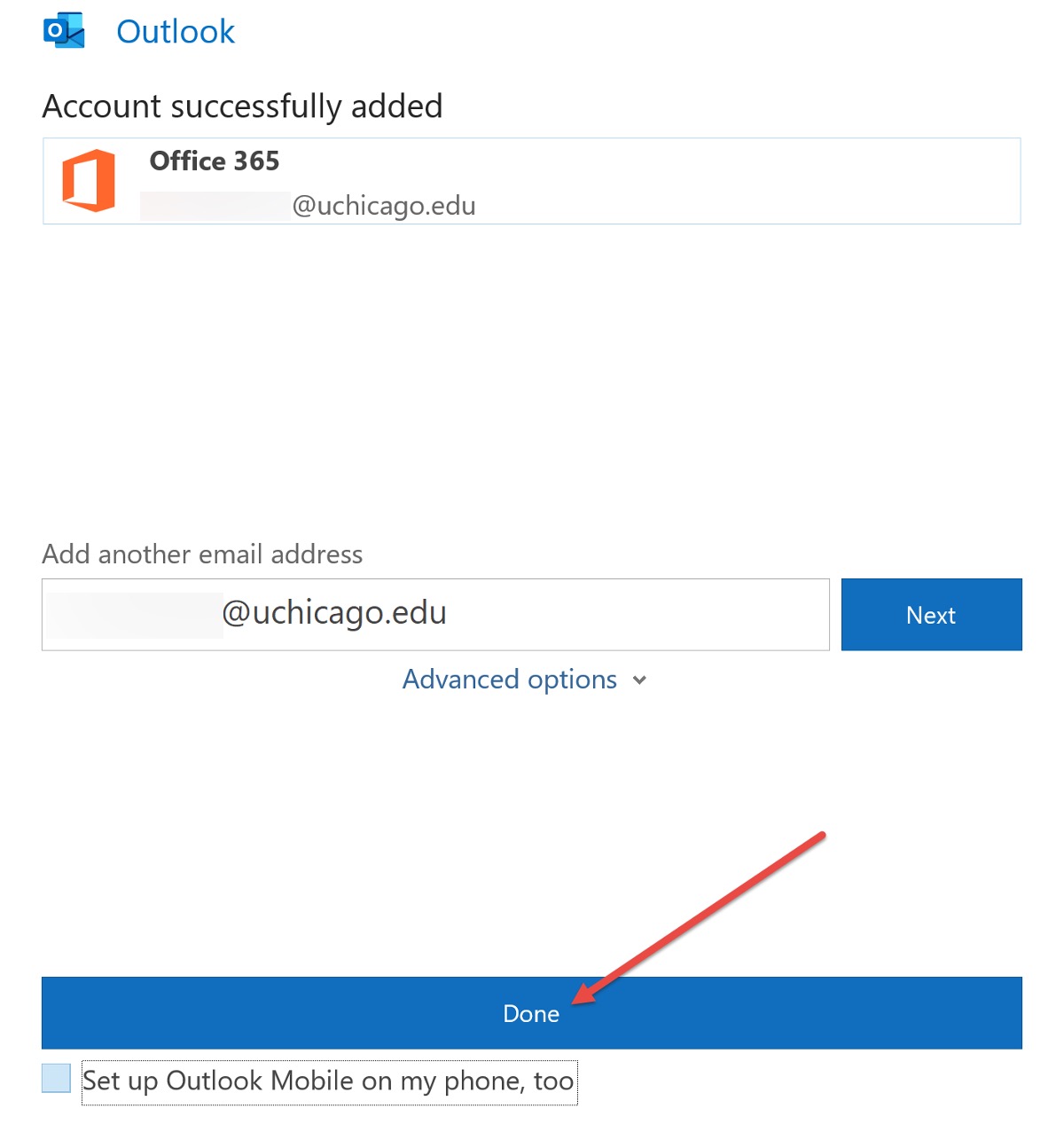 Tip: If you've had Outlook installed before, Outlook will automatically display your UChicago email address.