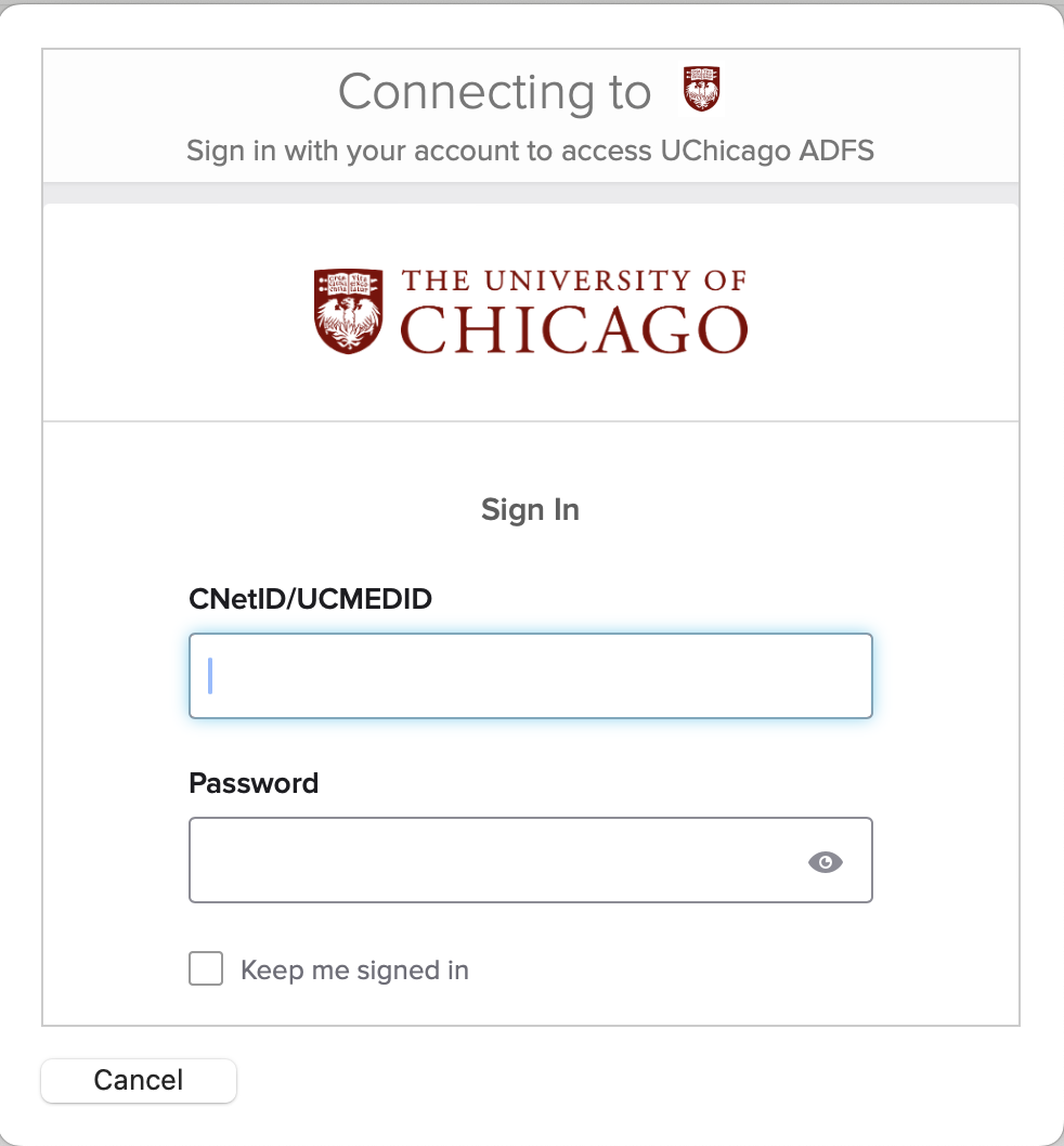 - If prompted, enter your CNetID and Password. Select Sign in.