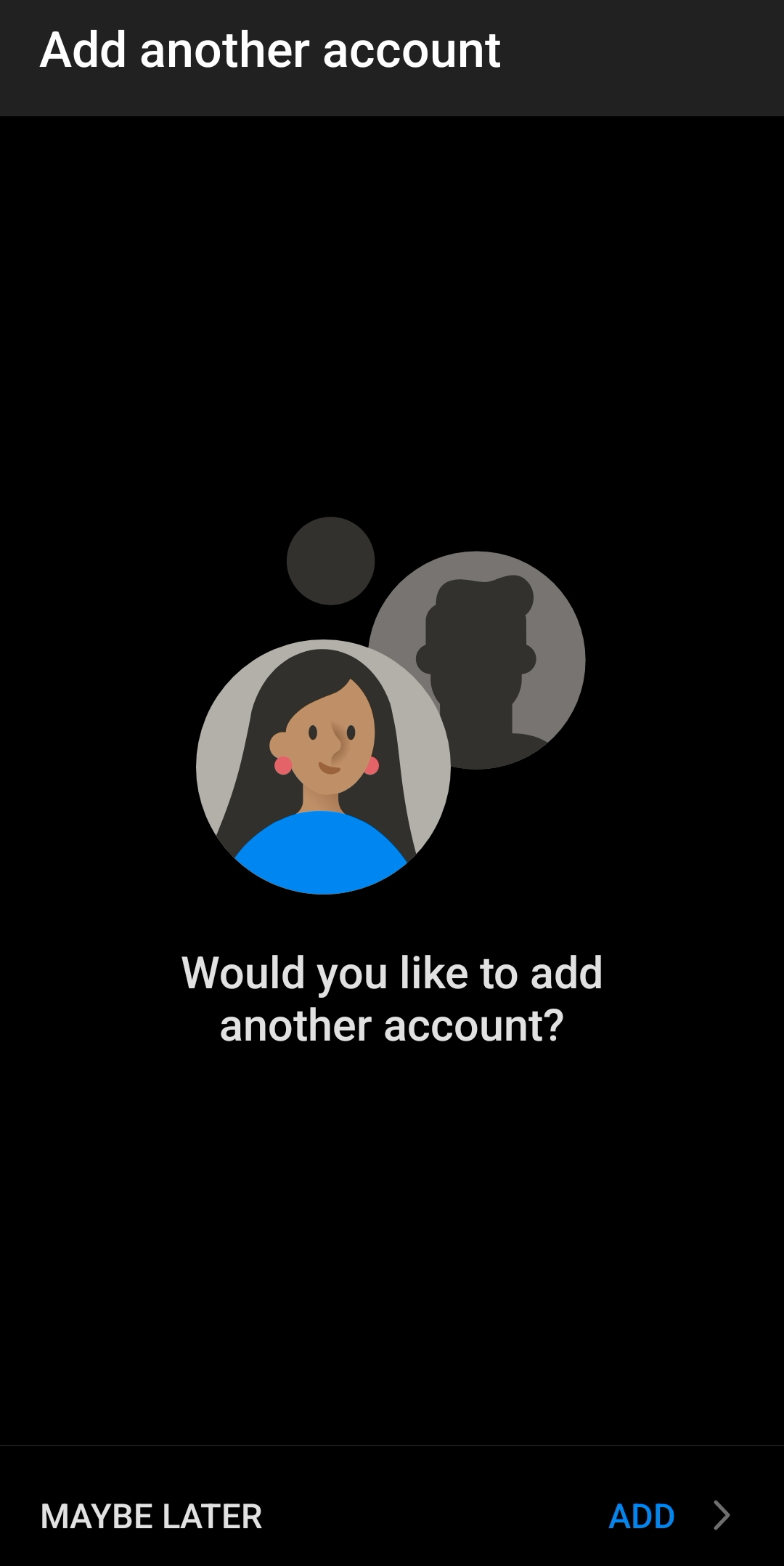 - From the Add another account screen, select MAYBE LATER, unless you want to add an additional account.