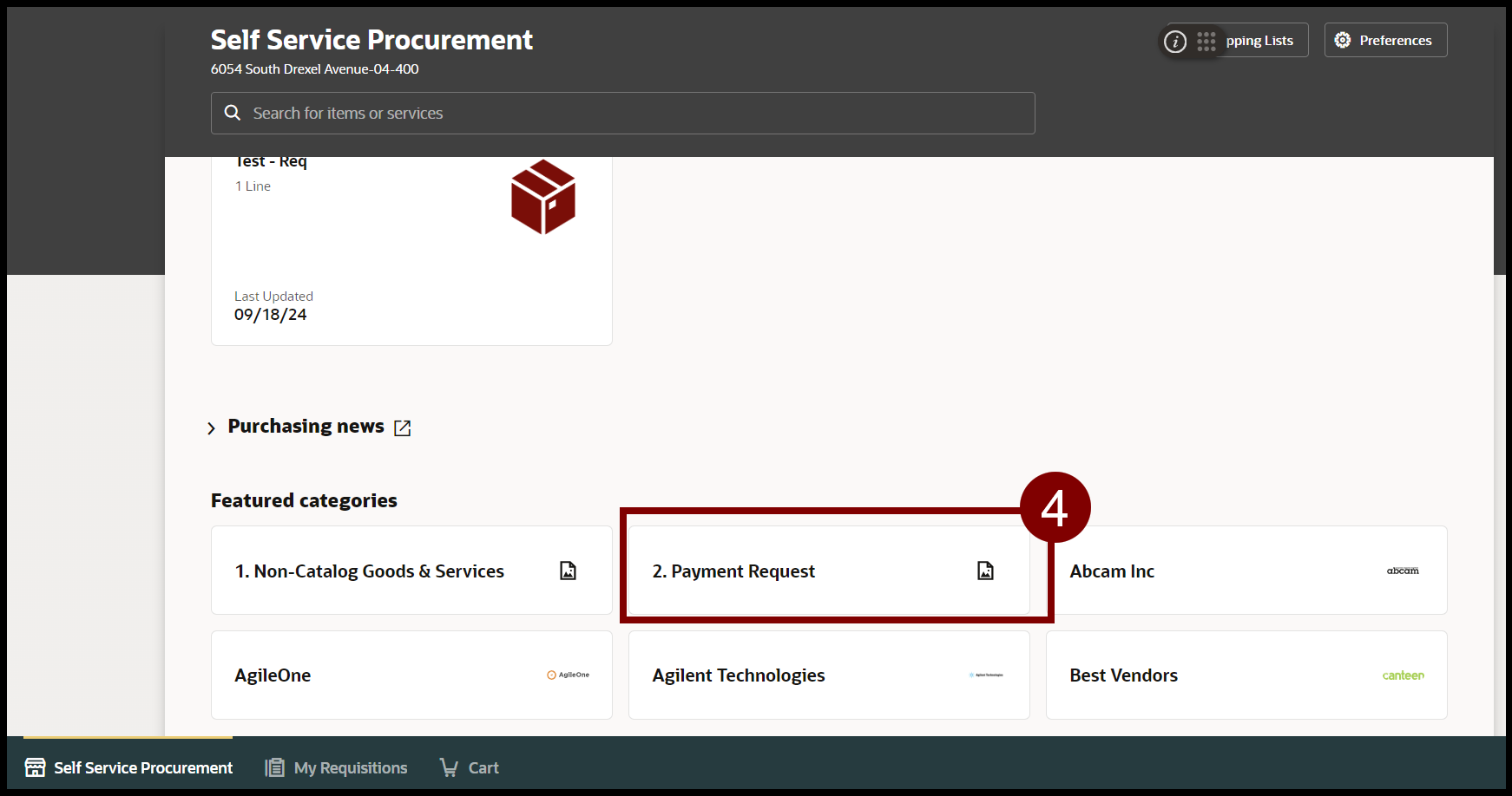 - Under Featured categories, select 2. Payment Request.