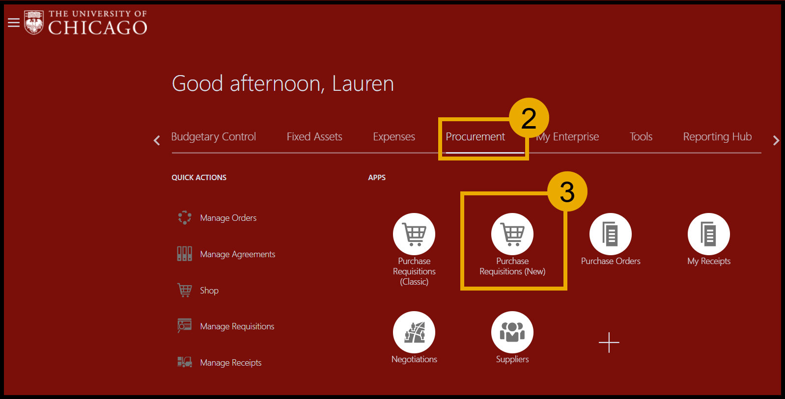 - Navigate and select the Procurement module.