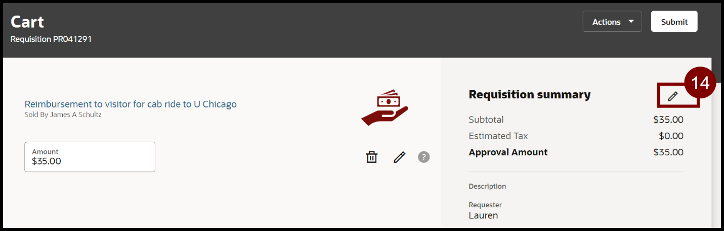 - Select the Pencil Icon to update the Requisition Summary.