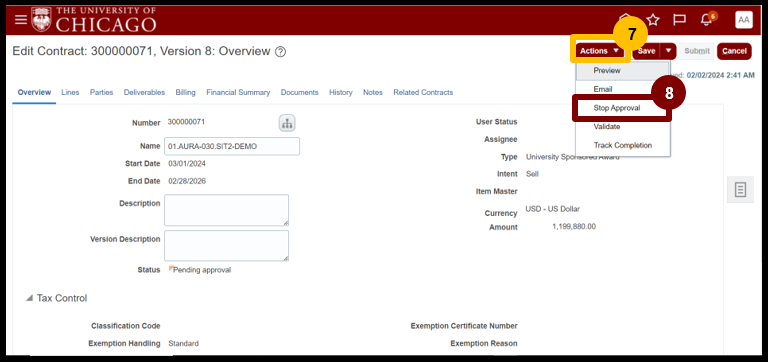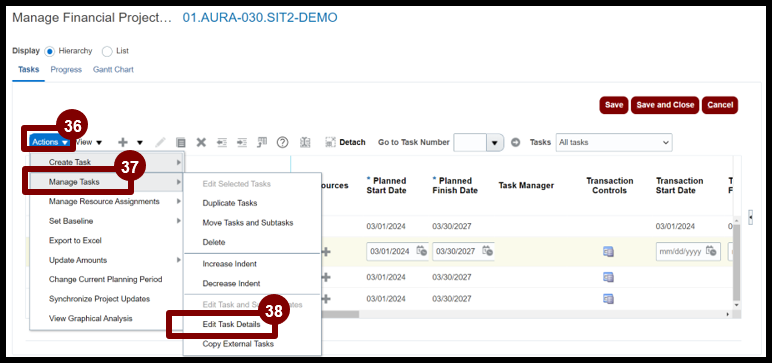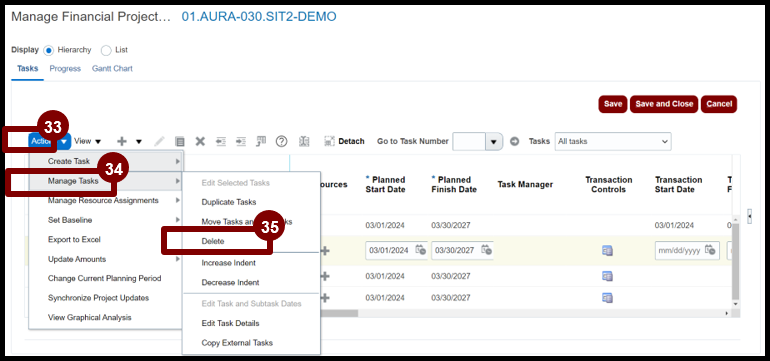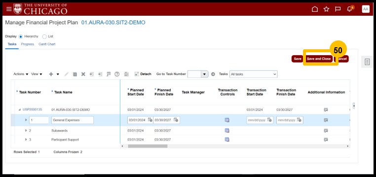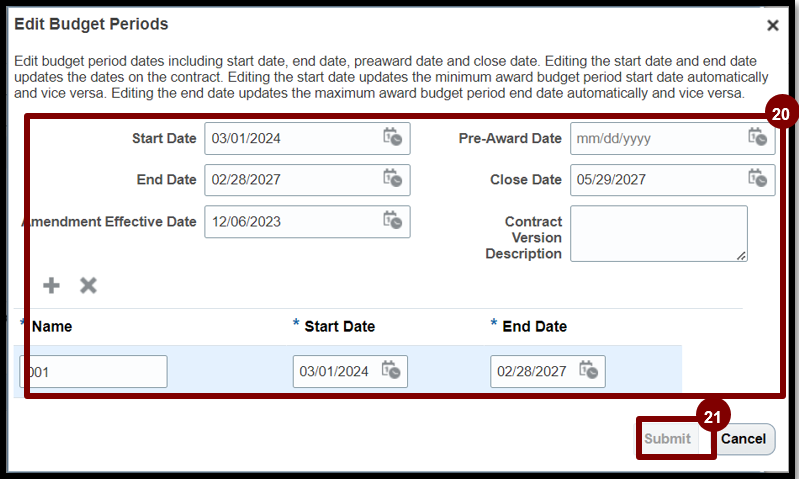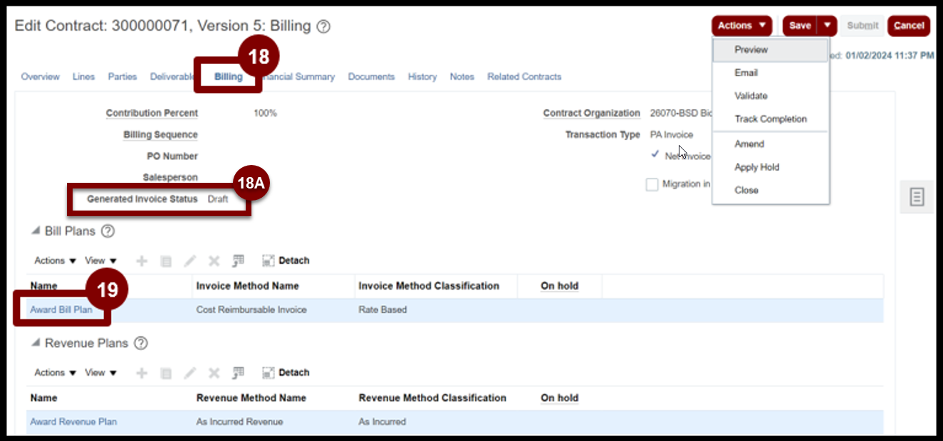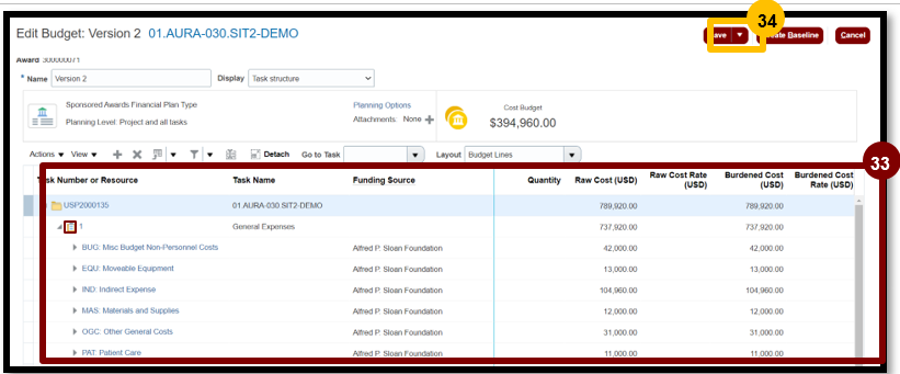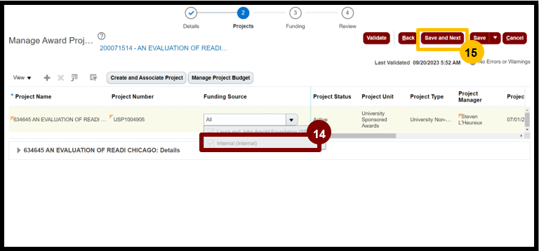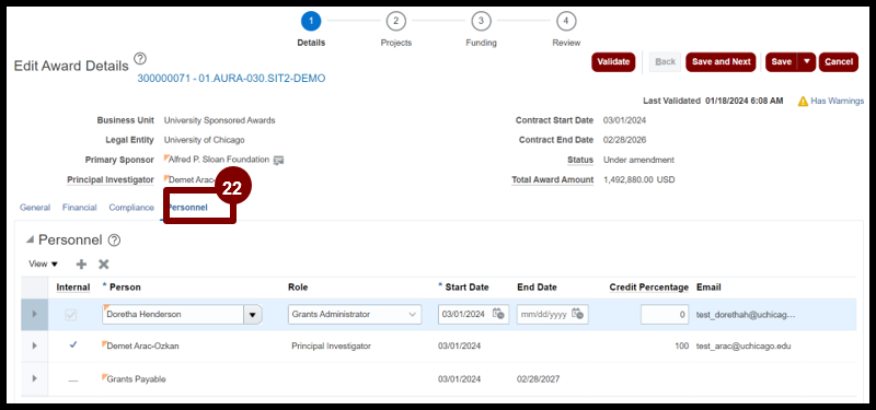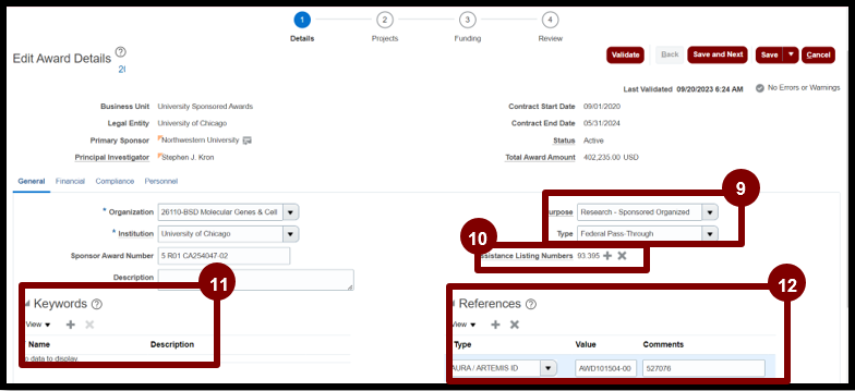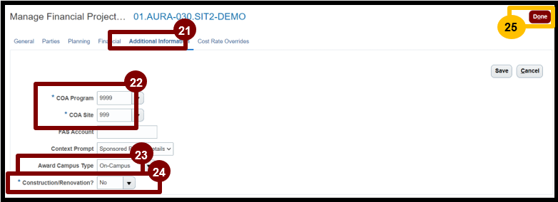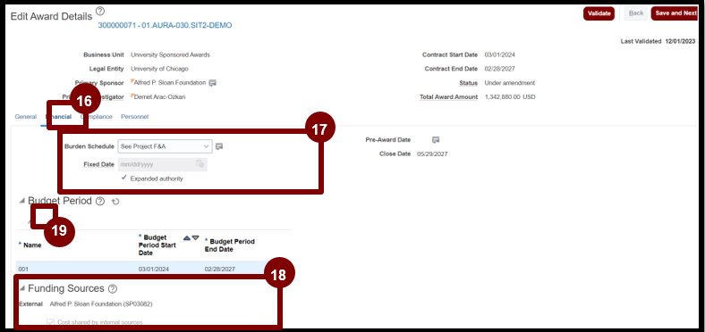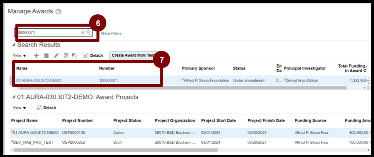 Important: This step is essential prior to award integration from AURA to Oracle. Failure to follow this scenario may result in integration errors that require technical intervention to resolve.