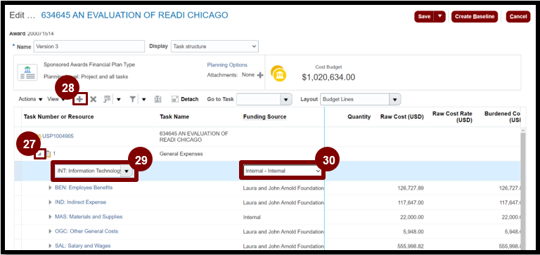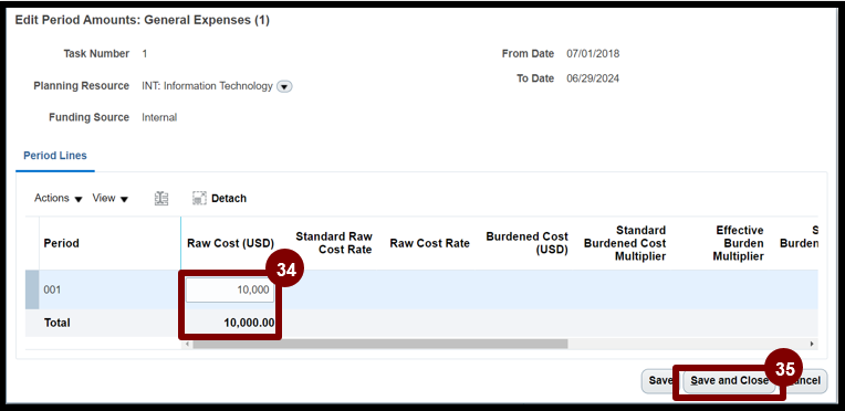 - Note: Burdened Cost is not enabled for Internal budgets.