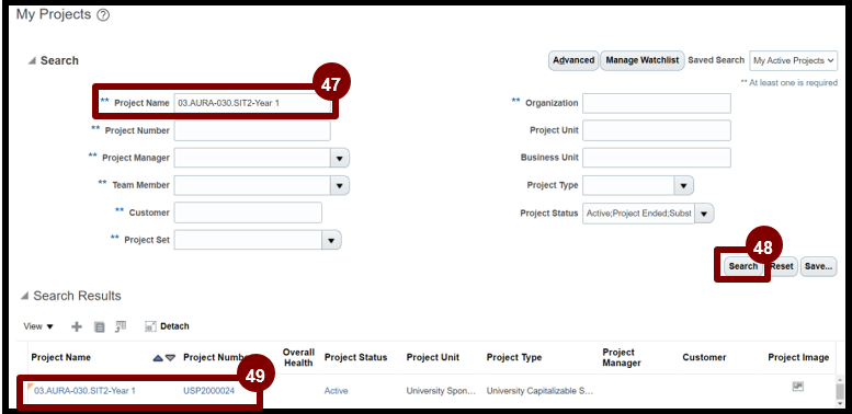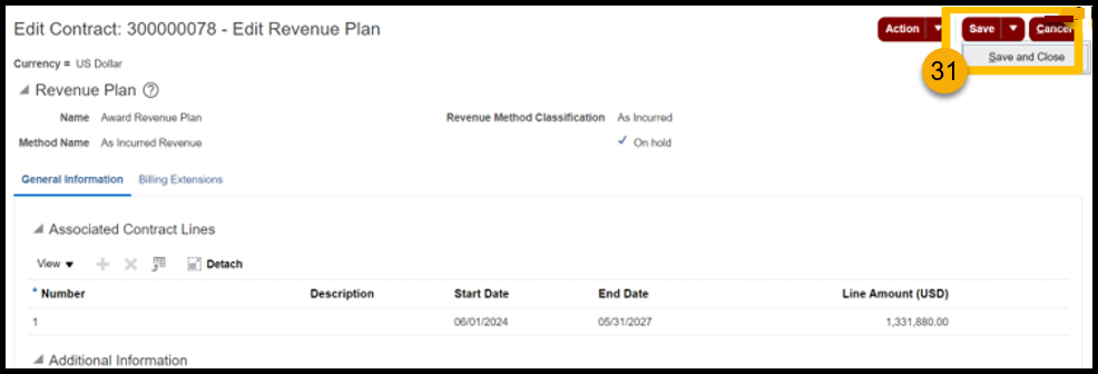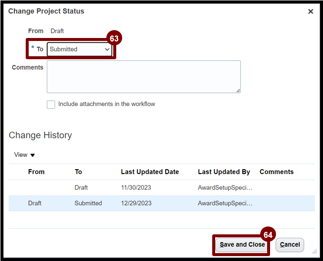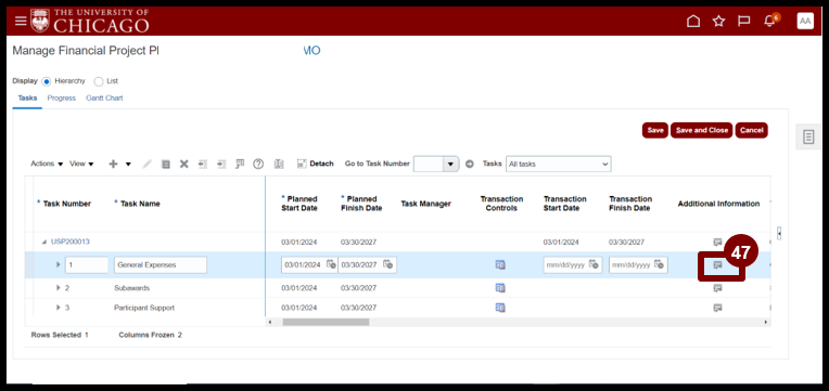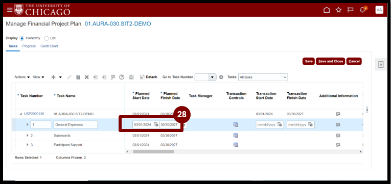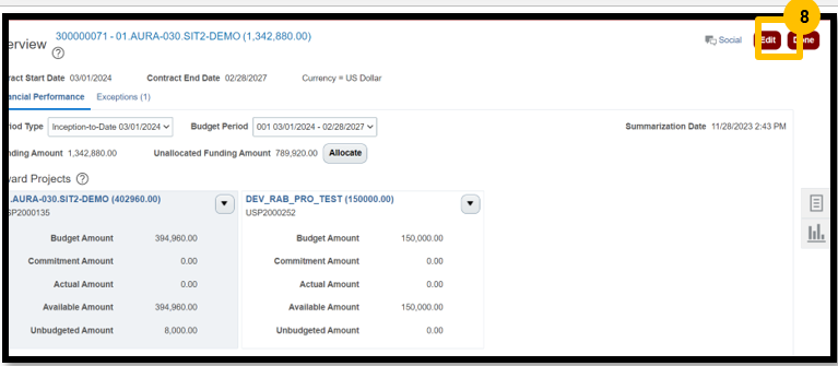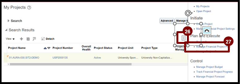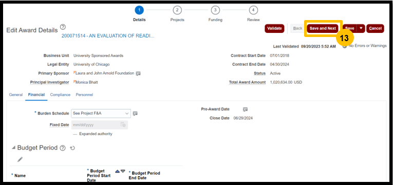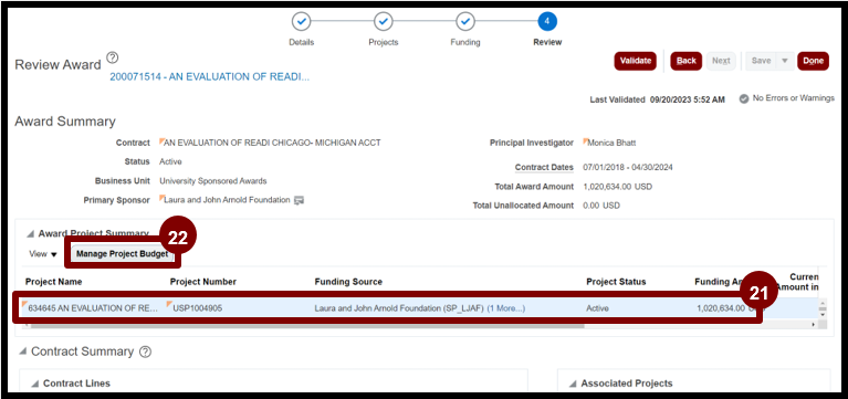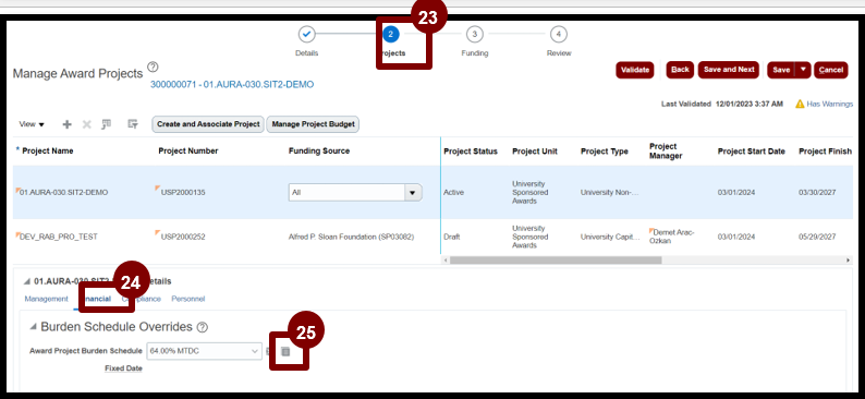 - Note: If there is more than one project on the award, repeat steps 23 through 27.