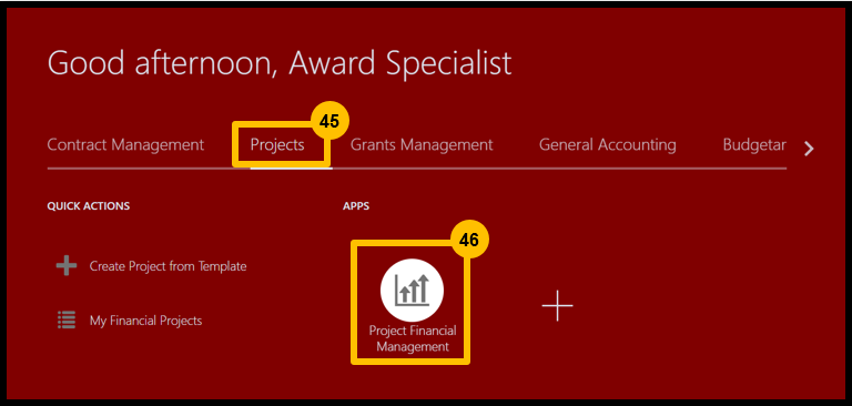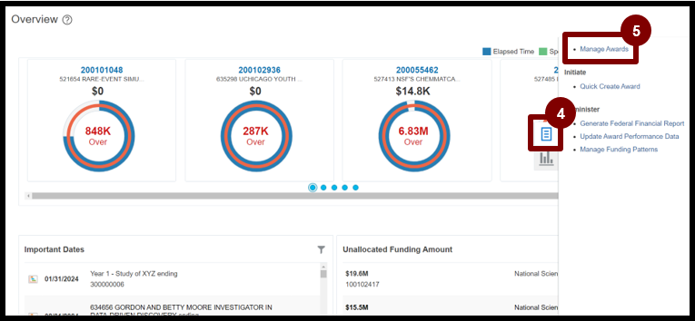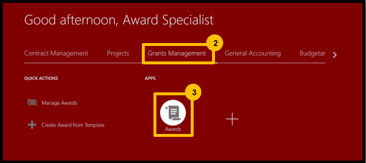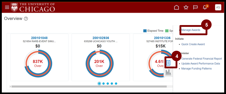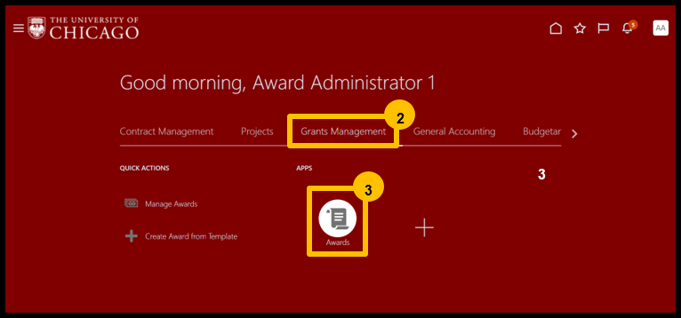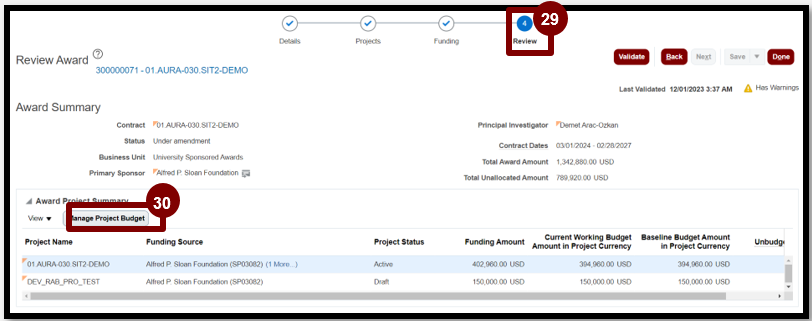 Grants Management -> Awards -> Review page -> Manage Project Budget