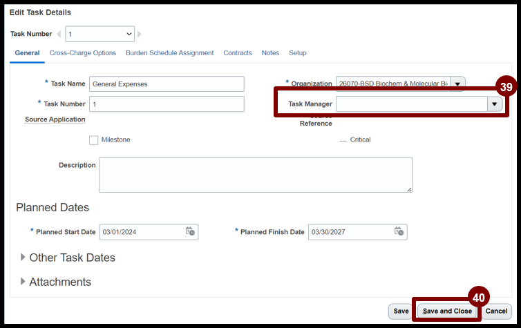 - Note: The award Close Date will default to the Award End Date + 90 days (per Grants Business Unit options) but should be adjusted to match the Sponsor’s final reporting/invoicing requirements.