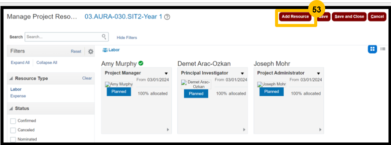 - Note: Personnel other than the PI may integrate from AURA to the Oracle Project(s). Most also require access to view the Award. To grant this access, you must add them on the Personnel subtab. Use the Department Administrator role.