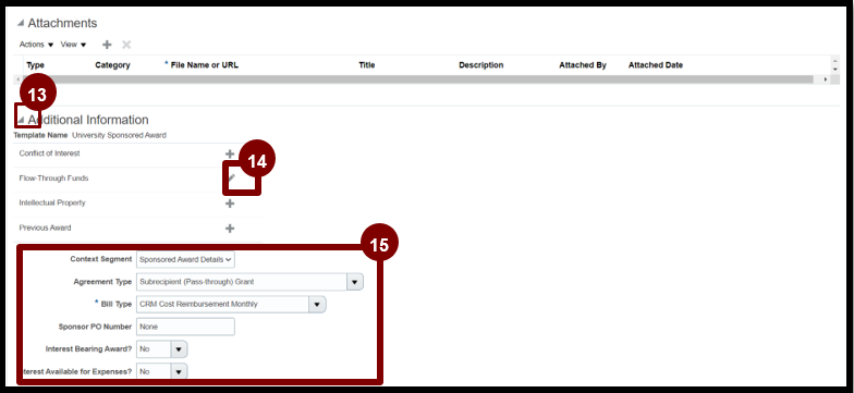 5 Descriptive Flex Fields (Agreement Type, Bill Type, Sponsor PO Number, etc.)