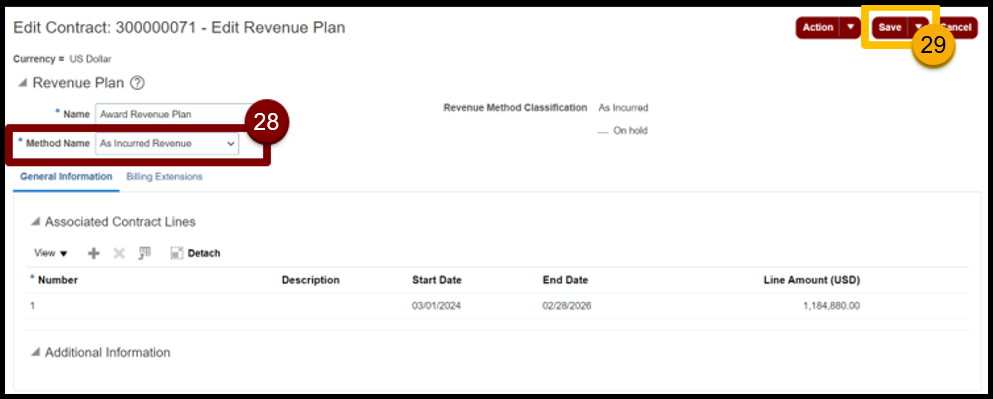 - Revenue Method: Revenue attributes associated with one or more contract lines on a contract and used to generate revenue entries for the contract.