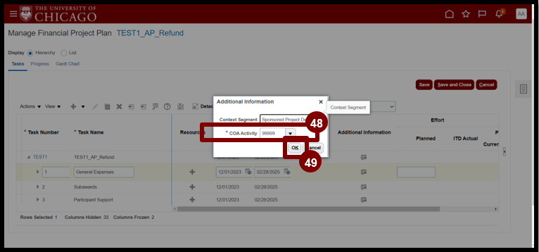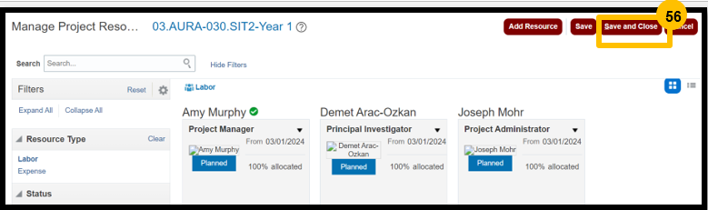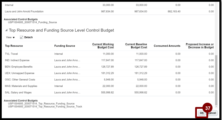 Repeat the steps from Manage Project Budget (step 22) if other projects require the addition of Cost Share budget lines.