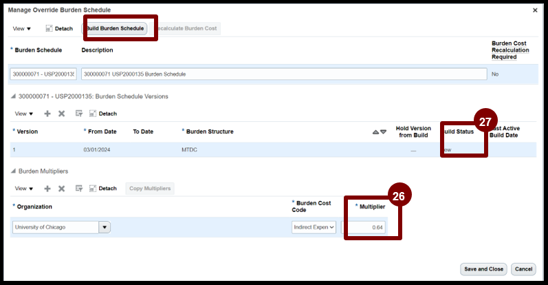 - If the Build Status is New rather than Active, select Build Burden Schedule to activate it.
