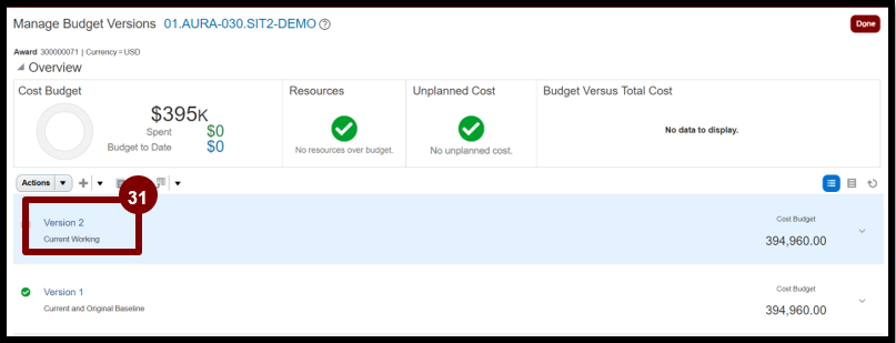 Follow these steps if there is no Current Working Version of the Budget. Otherwise, skip to the next step.
