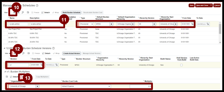 - In the Burden Schedule Versions grid, if a row is not automatically added, select the plus sign to add one. Highlight the row, and then enter: