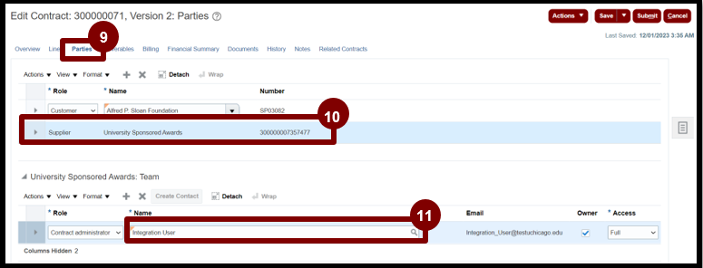 Contract Management -> Contracts -> Parties page, Supplier Line