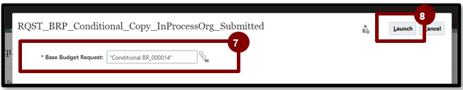 8. Confirm Base Budget Request ID.