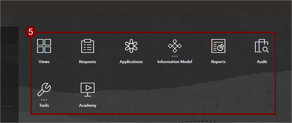 - Alternatively, use the Cards located on the left side of the Homepage to access the desired functionality. The three dots below a card label indicate a grouping of cards, called a Cluster.
