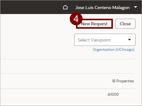 - To start a request, select New Request on the top-right corner of the screen. This action will create a Draft request. NOTE: This button appears only for users with the role required to edit the specific COA segment. For details, refer to the workflows document in the Keep in Mind section of this article. If the button is unavailable, contact an authorized user to submit the request or reach out to the Role Assignment owner to submit an Oracle/Orbit Access request in ServiceNow for the necessary role. Also, before adding a new COA value, refer to the recommendations in the Keep in Mind section to ensure the need for a new value has been properly evaluated before creating the EDM request.