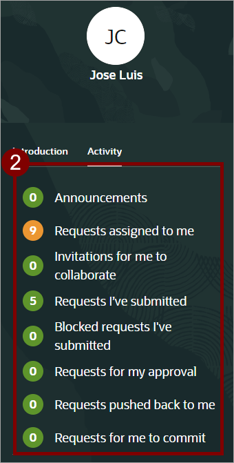 - Select any of the options available in the panel. NOTE: When one or more requests in a category require action, the green badges will change to orange or yellow. The number inside the badges indicates how many requests are in each category.