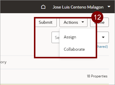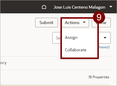 - For updates to the Organization, Program, Site, Activity, and Fund (C90000 - Agency Funds and D27250 - Designated Operating) segments, proceed to Step 11. For updates to all other COA segments and Fund ranges, before submitting the request, use the Actions button to Assign it to someone else or invite other users to Collaborate on the request if desired; otherwise, proceed to Step 10. NOTE: When a request is assigned, ownership is transferred, meaning it can no longer be edited or submitted by the original owner. Collaborating means inviting others to view the request, make updates, and enter comments, while retaining ownership and responsibility for editing and submitting it.