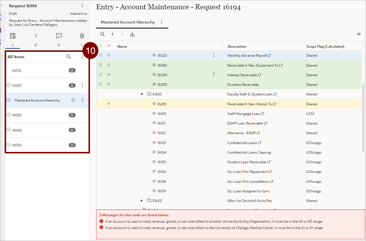 - Each COA segment follows a unique workflow, with different actors responsible for each step in the change request process (e.g., creation, submission, approval) to ensure proper governance for every update. For detailed information, review the Workflows for COA Values in EDM document.
