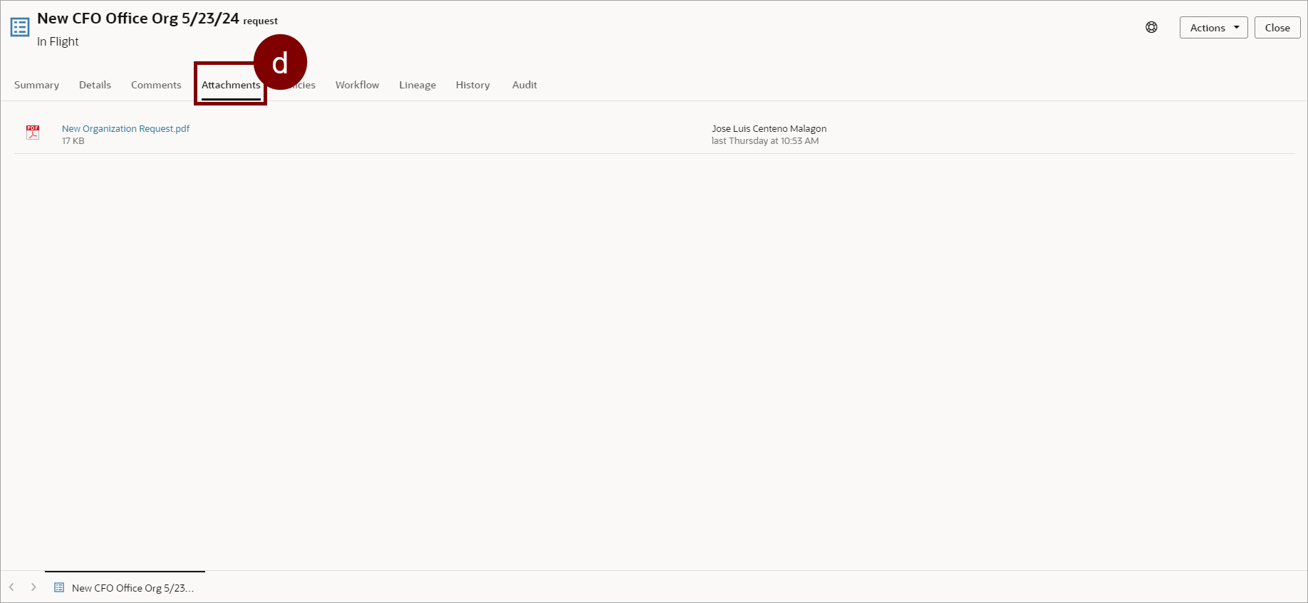 - Attachments: Shows any documents or files that request participants may have added to the request.