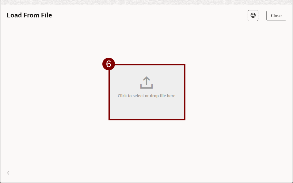- In the Load From File pop-up, click to select or drop the load file (Excel spreadsheet) into the grey box.