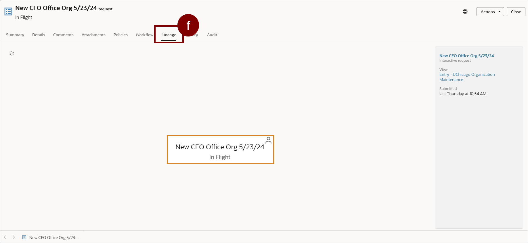 - Lineage: Shows related requests that precede and follow the request being inspected.