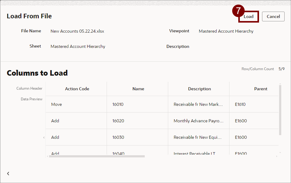 - Once the Excel spreadsheet populates, select Load in the top right corner.