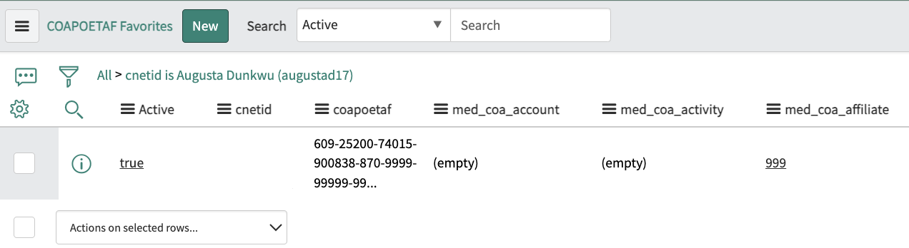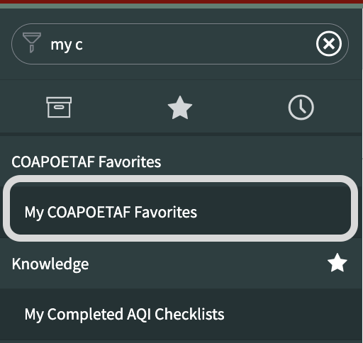 - Select All COAPOETAF Favorites under the COAPOETAF Favorites application.