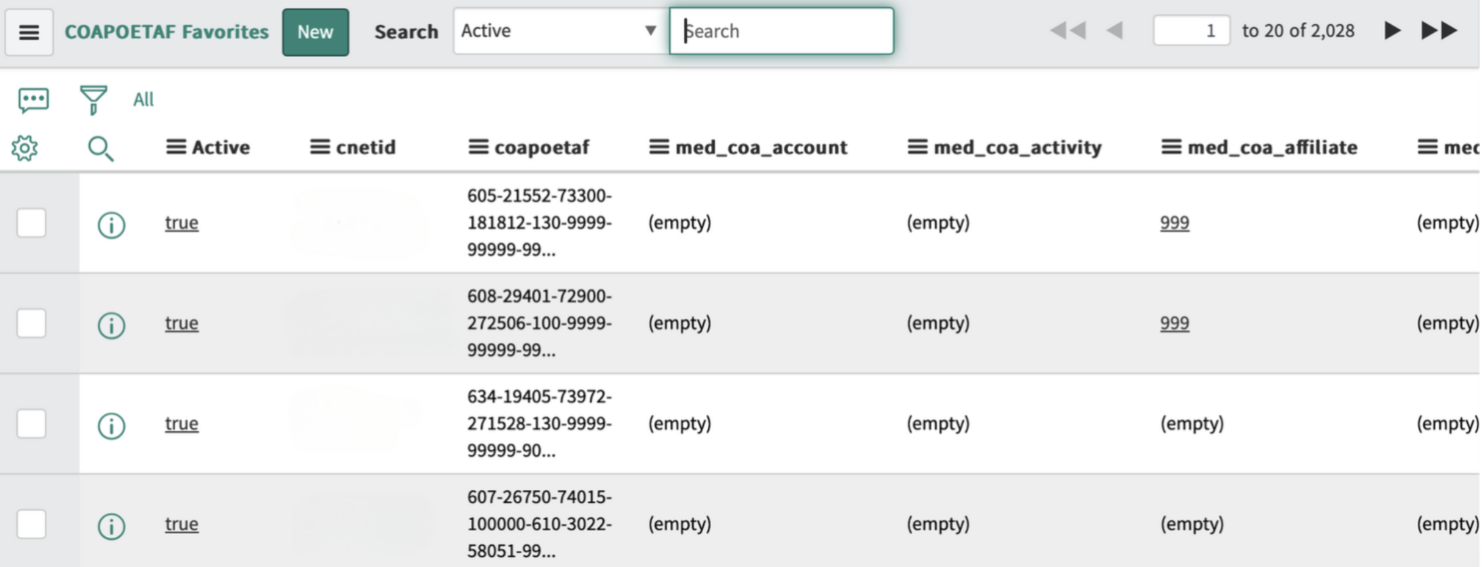 - Select the favorite financial account you wish to copy and then note the COAPOETAF number. (As an example, the COAPOETAF number 605-21552-73300-181812-130-9999-99999-9999 is used.)