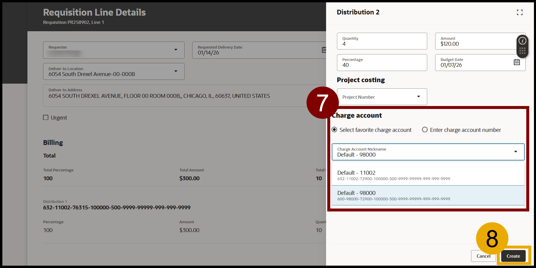 Follow Steps 7-8 to choose COA information for the split distribution.