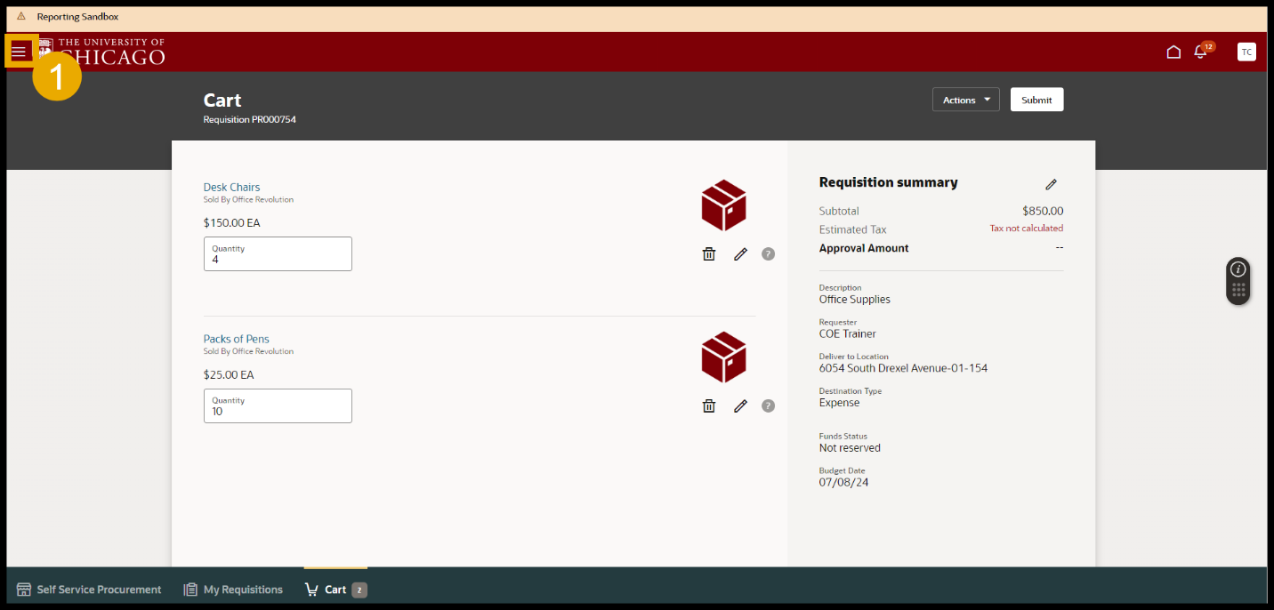 - Oracle does not currently allow to split the distribution at the Header Level of a requisition in Redwood. After adding items to the card in Redwood, open the Navigator.
