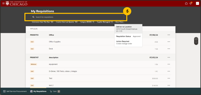 - This will only show status for requisitions you created the ability to search for another requester’s status is available for only specific roles.