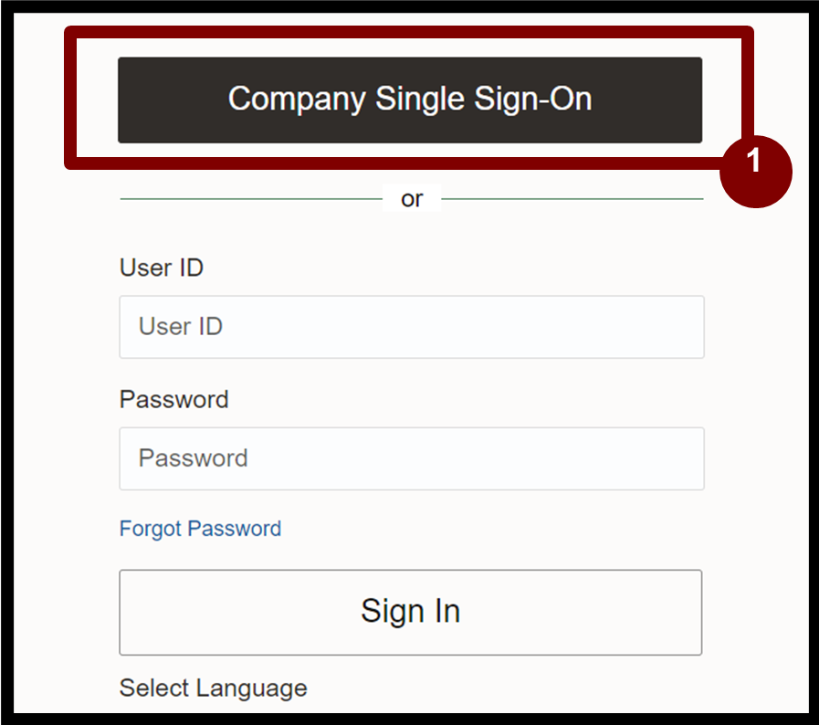 - Select Company Single Sign-On to log into Oracle.