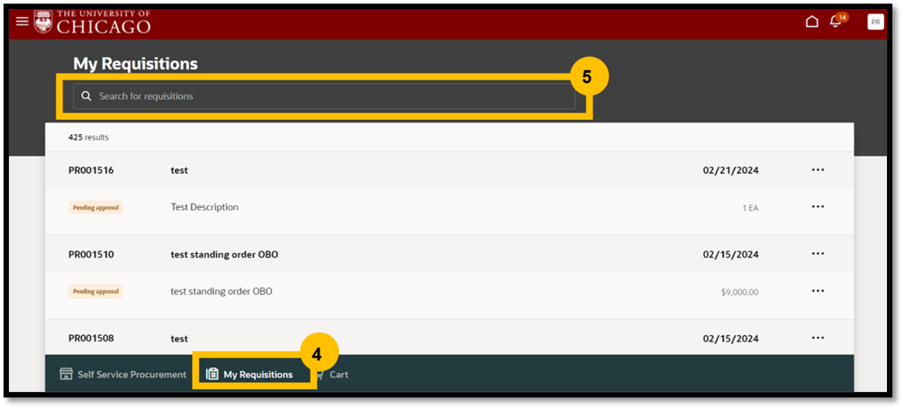 - Enter the Requisition number in the search box.